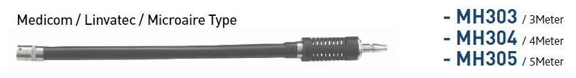 Popis: Vzduchová hadice Medicom, Linvatec a Microaire. Dostupná v délce 3m (MH303), 4m (MH304) a 5m (MH305).